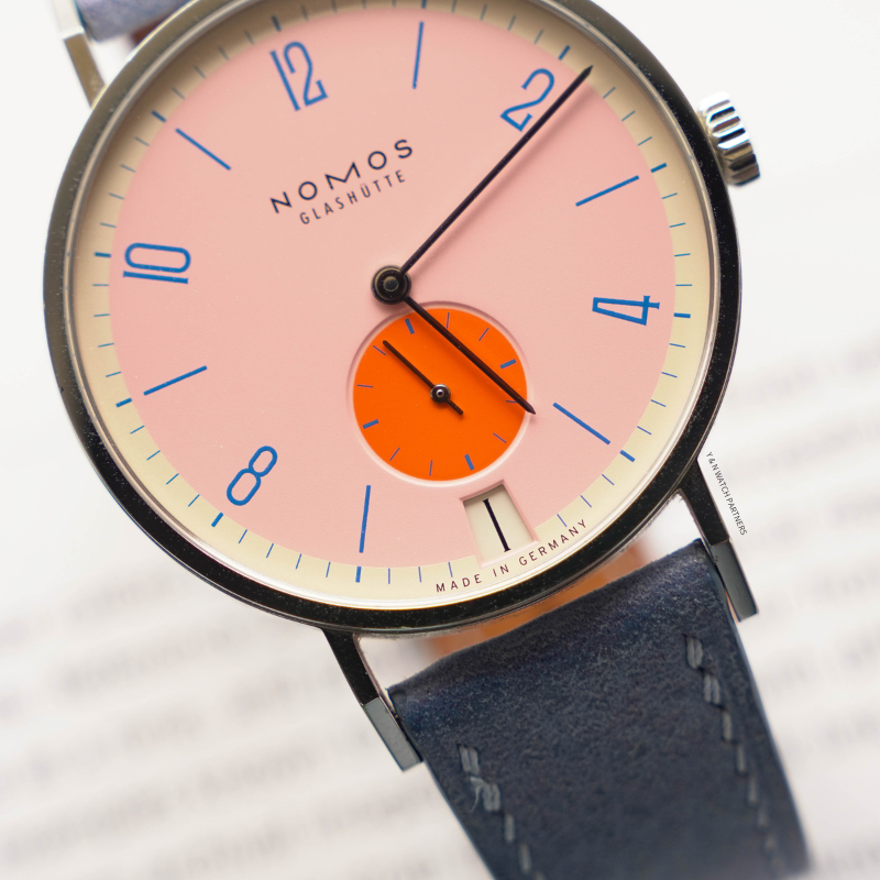 To celebrate 175 years of watchmaking in Glashütte, NOMOS introduced the Tangente 38 Datum limited series in 31 vibrant colorways—one for each day of the month—with 175 pieces per color.
