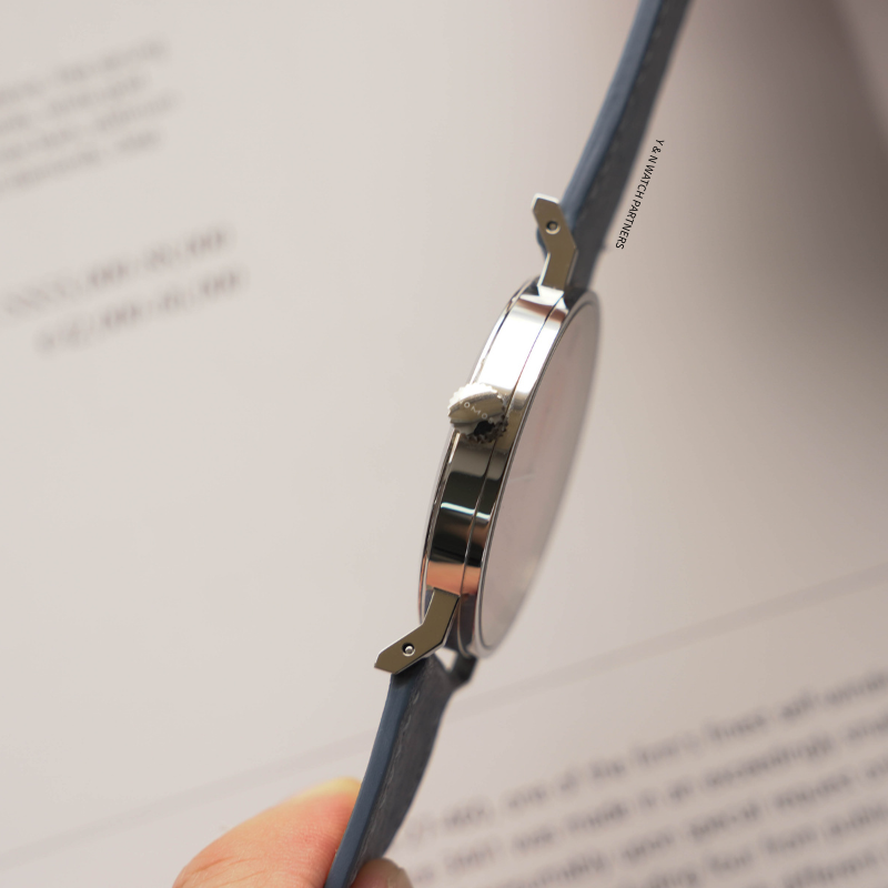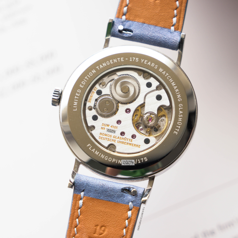 The date aperture at 6 o’clock appears unusually expansive—made possible by the thoughtful architecture of the movement. Powered by the NOMOS DUW 4101, the date ring is positioned at the outermost edge of the movement, allowing the date window to open closer to the dial’s perimeter. The result is a more spacious, open display. This construction is patented and has become a signature feature of NOMOS date watches.
