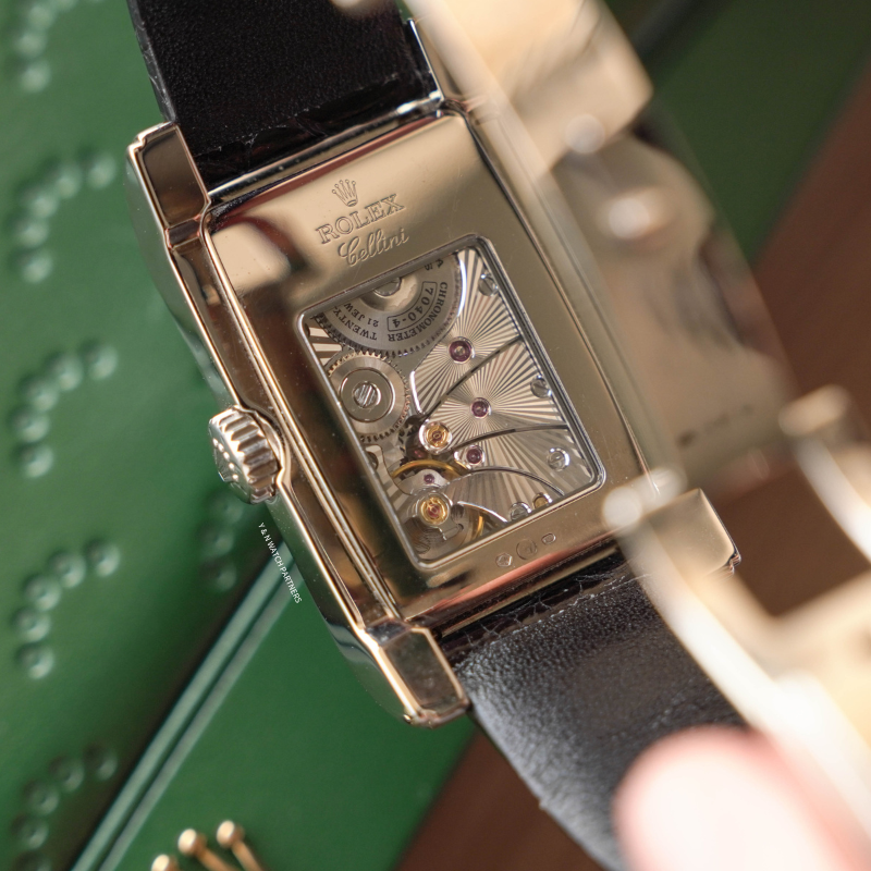 On the movement side, this Ref. 5443 features an exhibition caseback—an extremely rare design choice for Rolex. Through the sapphire crystal, one can directly admire the manually wound Cal. 7040, developed by Rolex specifically for this series.